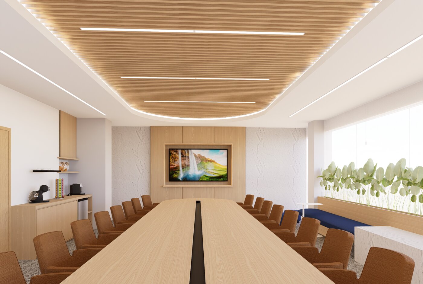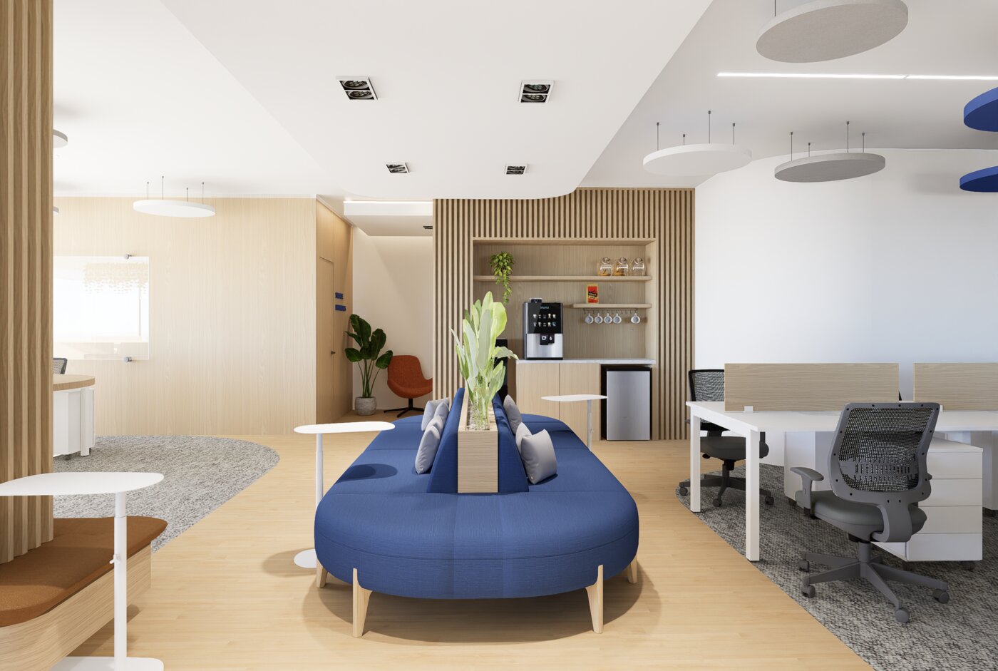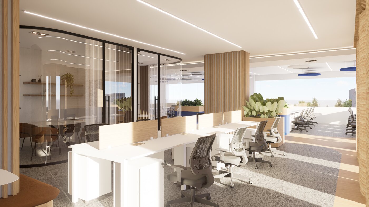Proyecto: Diseño de las oficinas corporativas La consolidada. M2: 1200 m2Ubicación: Edificio Aymac I, Asunción. Año: 2025 Servicio: Diseño General del proyecto y concepto.