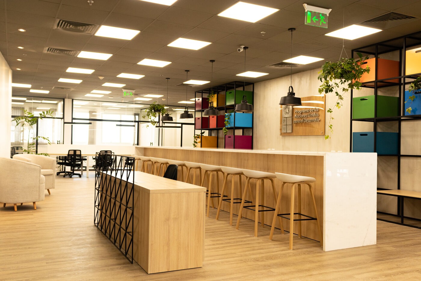 Proyecto: Oficinas corporativas PNUD Paraguay.M2: 430m2Ubicación: World Trade Center, Asunción.Año: 2022Servicio: Diseño General del proyecto y ejecución en alianza con el estudio Tangible — Arq. Maria Bertha Peroni.