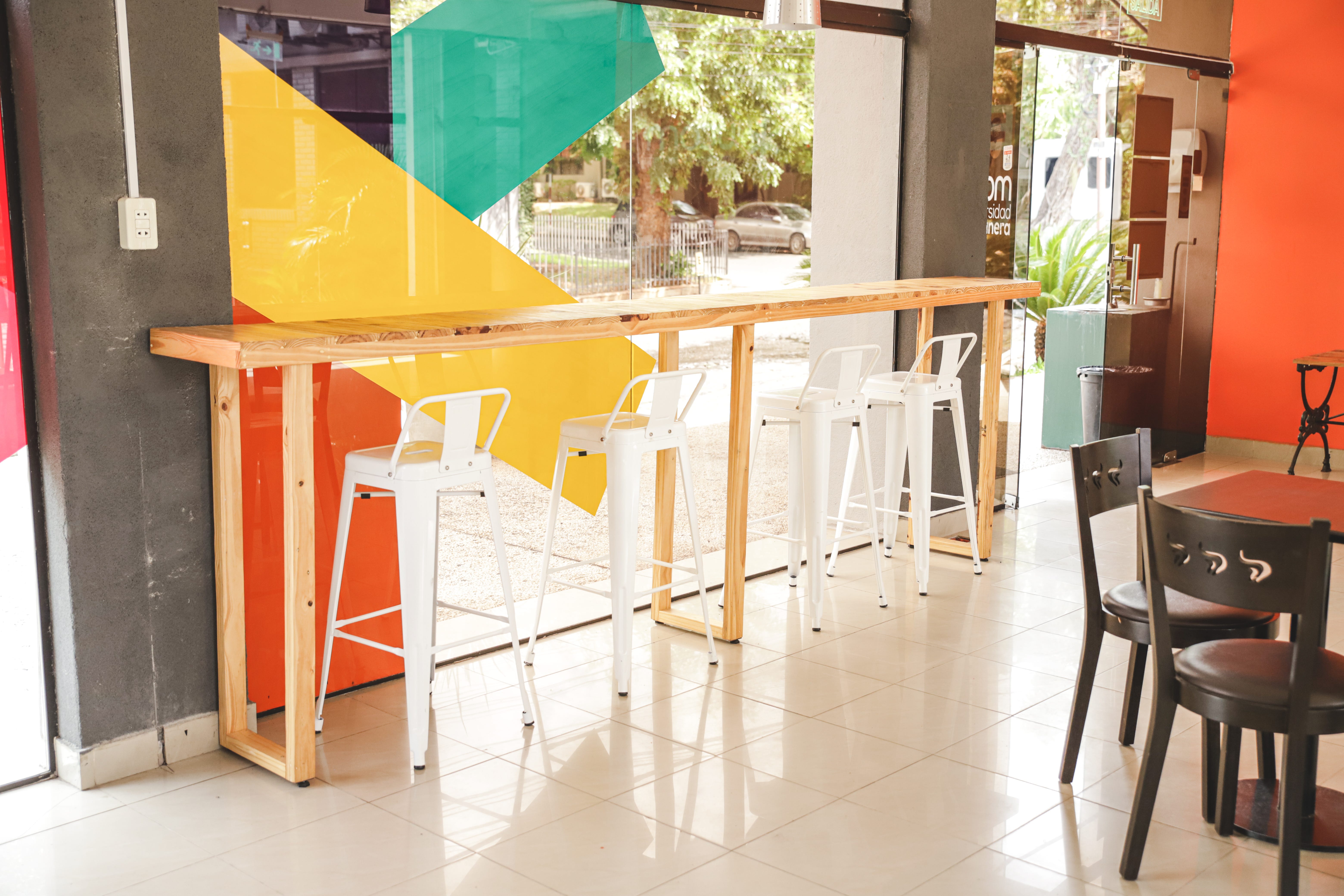Tomamos los colores del logo y buscamos plasmarlos en paredes, puertas, plotters, frases y murales. Queríamos que las paredes hablen, que inviten, que cuestionen.